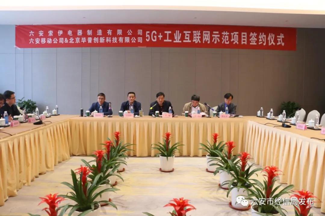 2020年4月24日,六安移動與六安本地家電制造龍頭企業索伊電器制造集團以及北京畢普創新科技有限公司聯合簽署5G+工業互聯網示范項目合同,項目總金額307.16萬元。市開發區工委副書記、管委副主任盧俊、市經信局總經濟師李兵、六...