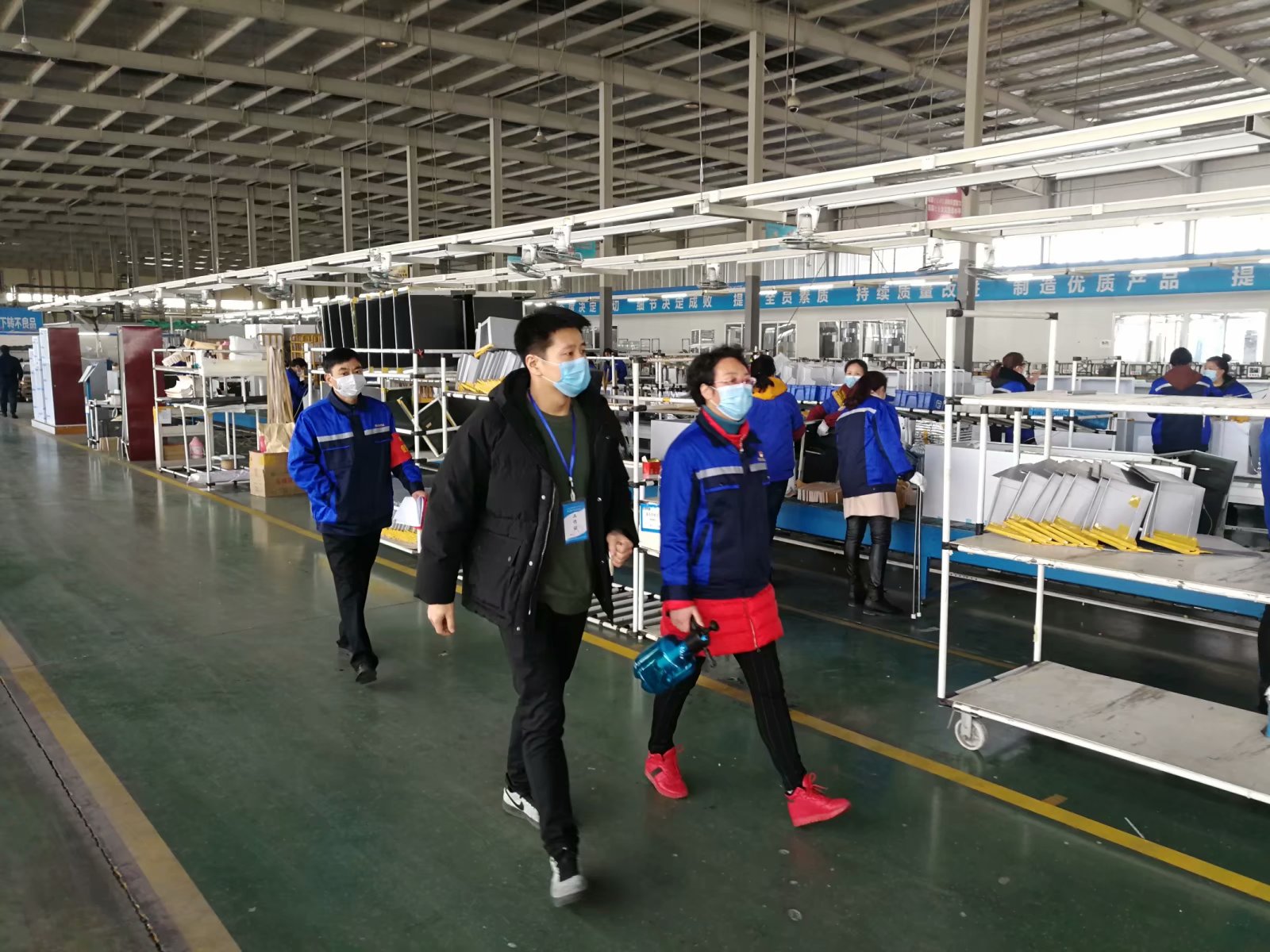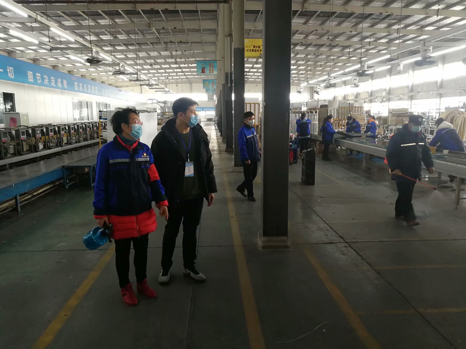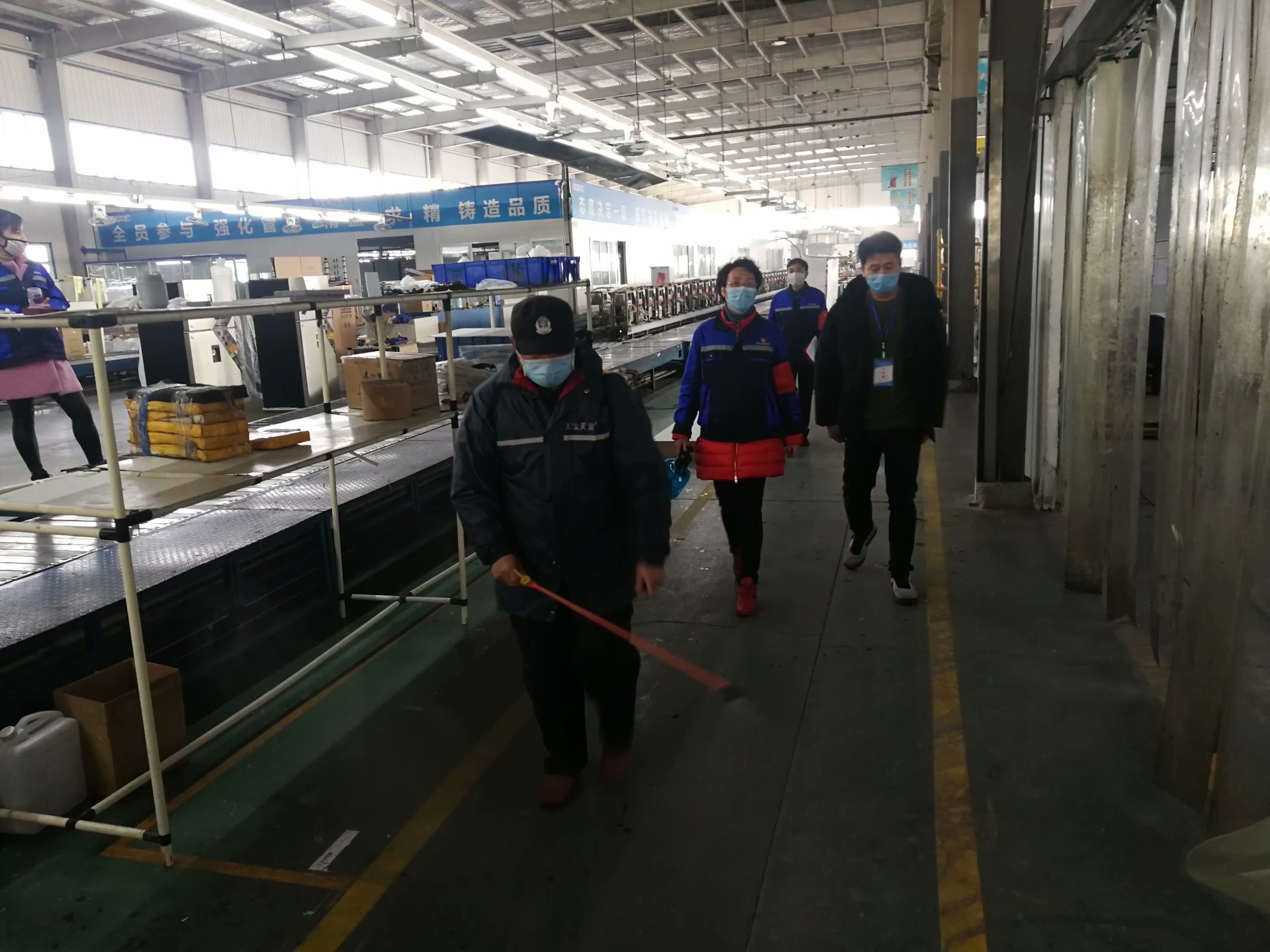 公司準備二月二十四日部分技術骨干及管理人員、外貿人員復工。二月二十三日,我第一次見到了徐局長本人,哦!原來是如此的年輕,高高的個子,勻稱的身材,說起話來很有親和力,他首先在我們公司大門口張貼了《六安市工業企業疫情防控復產復工“十必須十不準”規定》的宣傳畫,把自己的聯系卡也張貼在公司醒目處,對于我們前期所做的防控準備給予充分的肯定,還現場指導我們前來復工的人員必須建立一人一檔,前十四天的體溫情況及個人承諾書等如何填寫,規范操作,建立復工員工的健康臺賬。送來了《六安市企業復產疫情防控工作實用手冊》并希望我迅速將手冊發放到企業負責人手中,同時把電子版發放到各班組中,各負其責。他還對公司的疫情管理制度、應急預案及物資配備進行了詳細的了解,對于我們提出的問題,都一一記下,給予幫助和解決。有了督導員,我們的工作思路明確了,工作方法輕松了,有困難找督導員,已經成了我們防控工作的習慣。當來自中風險的地區人員沒有提供證明時,當六安還沒有出安康碼時,當疫情物資緊缺時,我們第一時間找他解疑釋惑,找他幫忙,他都不厭其煩耐心地給予指導和幫助,讓我們非常的感動。每天八點多就來到我們企業,詢問每天的上班人數,有沒有變化,尤其是外來人員有沒有增加,每天的消毒工作是否規范,員工的口罩是不是發放到位,食堂的衛生情況及就餐環境是不是能滿足疫情防控的要求,他不僅關心,還每天與我們一起前往車間,前往食堂進行實地察看,包括隔離點的設置都給予明確的指導,讓我們不走彎路或少走彎路。