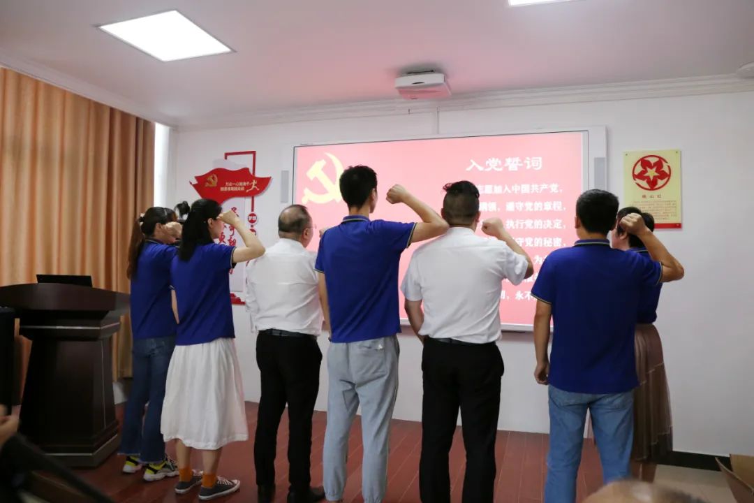 大會在高亢激揚的《沒有共產(chǎn)黨就沒有新中國的》大合唱中開始,全體黨員共同高歌,表達了對黨的無比忠誠和熱愛。接著六名新黨員舉行了入黨宣誓,老黨員重溫入黨誓詞活動。