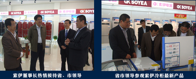 李磊局長(zhǎng)一行來(lái)到索伊公司的產(chǎn)品展示廳,看到的是琳瑯滿目的冰箱、空調(diào)及冰柜,從實(shí)用型到高端創(chuàng)意型;從外觀素雅型到靚麗型;從容積最小型到容積最大型,索伊公司把消費(fèi)者所想到的都運(yùn)用到了產(chǎn)品當(dāng)中。公司副總經(jīng)理劉勇向來(lái)訪的領(lǐng)導(dǎo)們介紹了索伊的生產(chǎn)和銷(xiāo)售情況,面對(duì)擺放在展廳大門(mén)兩側(cè)的玻璃櫥內(nèi)索伊一項(xiàng)項(xiàng)榮譽(yù)時(shí),李磊副局長(zhǎng)感慨的說(shuō),從索伊今天的實(shí)力看,不論是企業(yè)文化還是產(chǎn)品質(zhì)量,以及在行業(yè)中所榮獲的殊榮,索伊是值得我們安徽人驕傲的。
