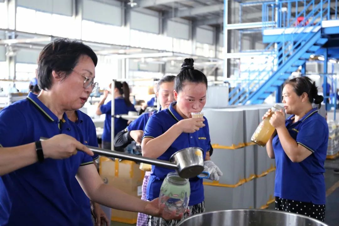 上午十點鐘,為體現公司領導對廣大員工的關懷,公司董事長助理倪曙東、黨委書記汪顯華來到車間,不僅是看望大家,還為大家送來了清涼可口的綠豆湯。員工們非常的開心,笑著說“真是又熱又渴,這時候給我們送綠豆湯真是及時雨”,一杯又一杯,真是清涼又可口。