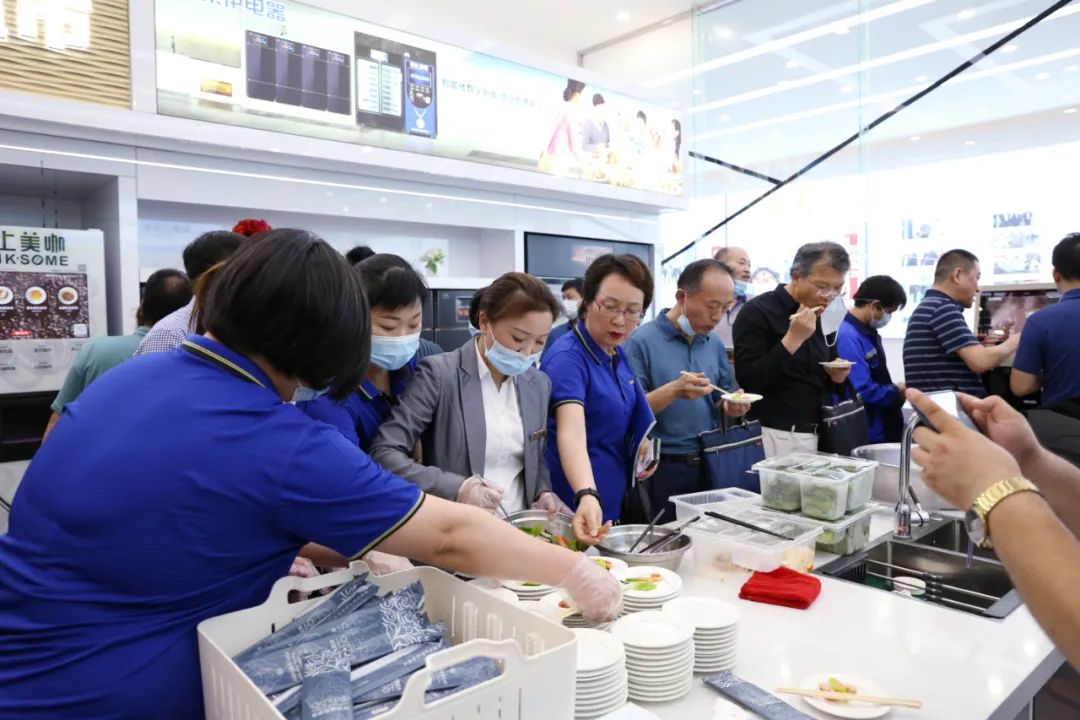 與會代表實地品嘗智能化數字烹飪機器人現場烹飪的菜肴