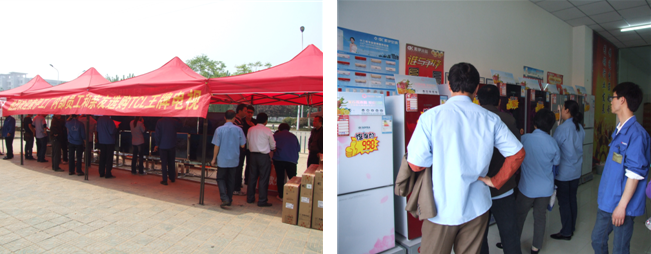 4月16日活動(dòng)開(kāi)展的第一天,手持“親!您們幸苦了!!”紅色福利劵的索伊員工就興致勃勃的來(lái)到索伊西大門(mén)興大公司選購(gòu)冰箱、空調(diào)及TCL彩電。時(shí)光荏苒,歲月如初,回眸索伊一路走過(guò)的激情歲月,汗水和豐碑將索伊的每一天都描繪的那么飽滿(mǎn)和立體。索伊從單一的生產(chǎn)冰箱發(fā)展到目前生產(chǎn)自主品牌的冰箱、冰柜及空調(diào)家電制造企業(yè);索伊從起初單一的家電生產(chǎn)制造發(fā)展到目前擁有家電、房地產(chǎn)、金融、礦業(yè)、酒店五大產(chǎn)業(yè),輝煌的成就是員工們一起攜手不斷開(kāi)拓創(chuàng)新的結(jié)晶,是無(wú)可匹敵的磅礴手筆描繪出的索伊宏偉藍(lán)圖。在本次活動(dòng)現(xiàn)場(chǎng),六安興大電器銷(xiāo)售公司的一位工作人員告訴筆者,去年七月為了感恩員工們對(duì)索伊的支持,六安興大銷(xiāo)售公司推出了“感恩回饋 千萬(wàn)豪禮大回饋”活動(dòng)。活動(dòng)的開(kāi)展,讓索伊工作的員工們實(shí)實(shí)在在的體會(huì)到了公司對(duì)員工的一種福利關(guān)愛(ài),憑公司發(fā)放的活動(dòng)福利卡購(gòu)買(mǎi)索伊冰箱,以?xún)?yōu)惠的價(jià)格享受高端的產(chǎn)品。去年的活動(dòng)得到了公司內(nèi)員工們的一致好評(píng),在春意盎然的四月,興大銷(xiāo)售公司攜手TCL集團(tuán),又一次推出索伊冰箱、空調(diào)、冰柜及TCL液晶智能彩電回饋員工。