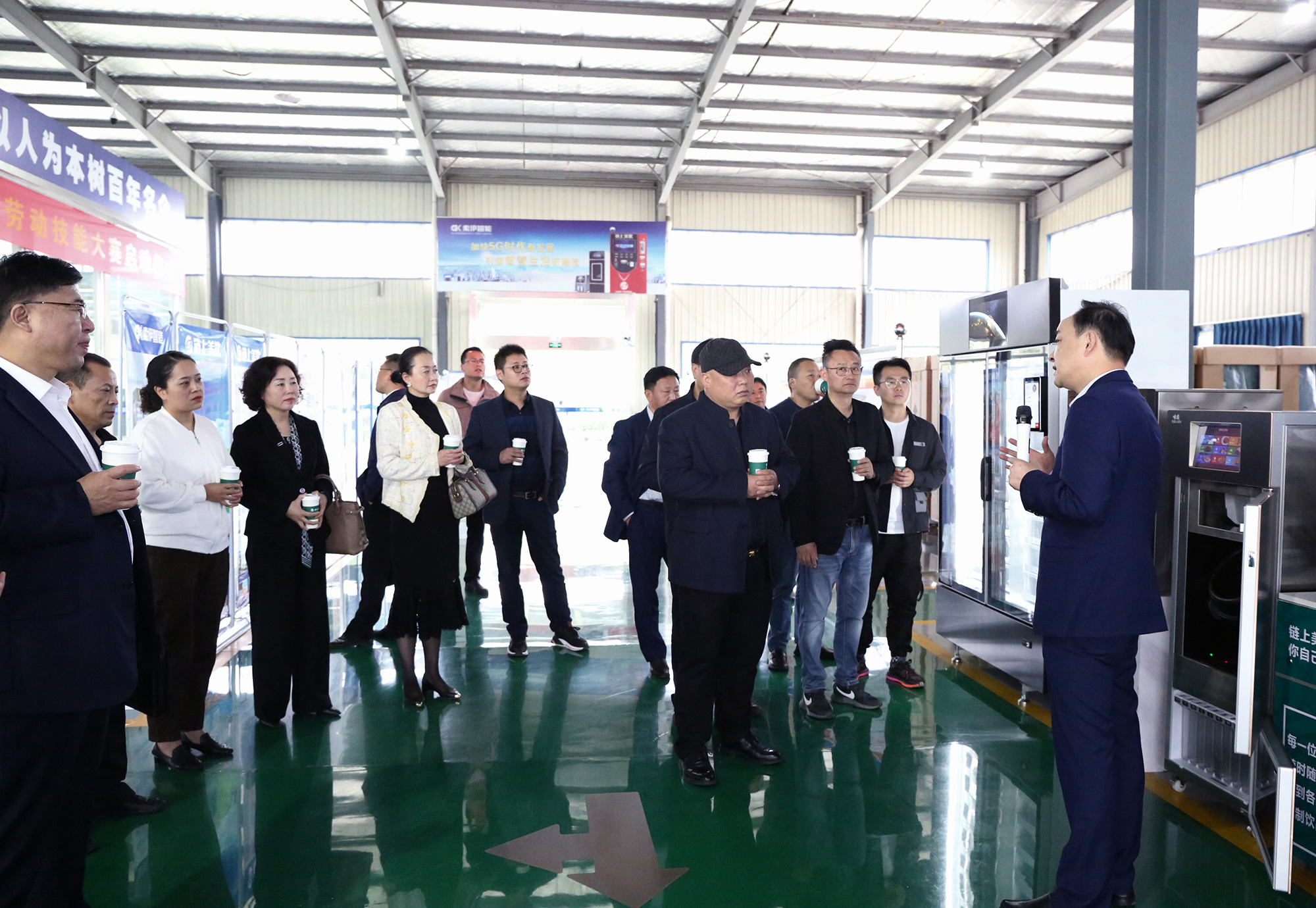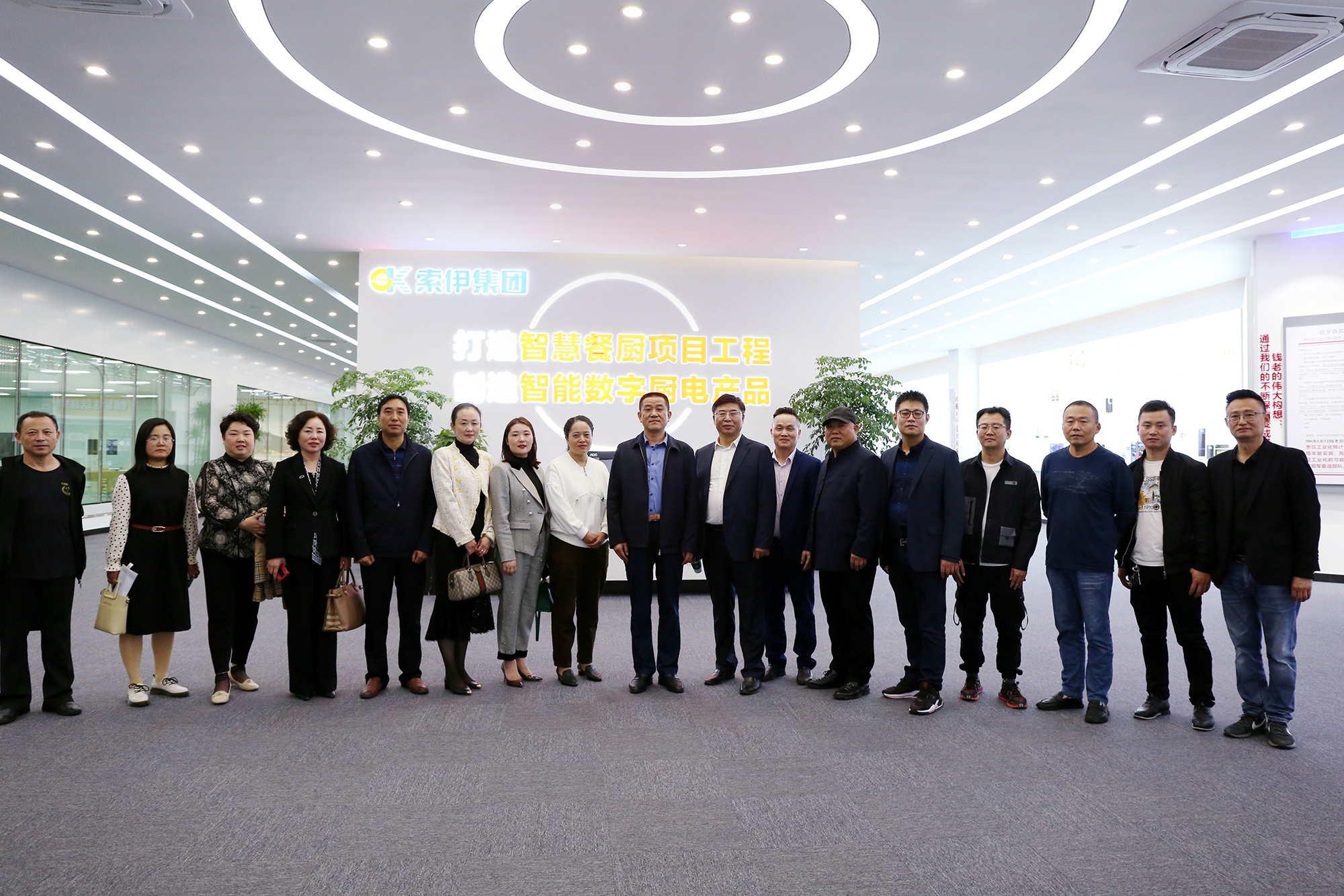 索伊集團(tuán)董事長(zhǎng)助理倪曙東帶領(lǐng)市、區(qū)領(lǐng)導(dǎo)及各企業(yè)部門負(fù)責(zé)人首先參觀索伊智能制造車間及產(chǎn)品展示廳,介紹了以智能烹飪機(jī)器人、智能機(jī)器人飲料機(jī)等“智慧餐廚”核心設(shè)備,讓大家更直觀的了解機(jī)器運(yùn)行的原理和構(gòu)造,隨后來到了轉(zhuǎn)型展示廳,由索伊集團(tuán)董事長(zhǎng)王瓊峰為大家介紹了企業(yè)的歷程、探索、升級(jí)的轉(zhuǎn)型之路,聽完王董事長(zhǎng)介紹后在場(chǎng)人員紛紛感慨索伊集團(tuán)的發(fā)展之快,并對(duì)智慧廚房的趨勢(shì)表示充分的認(rèn)可!