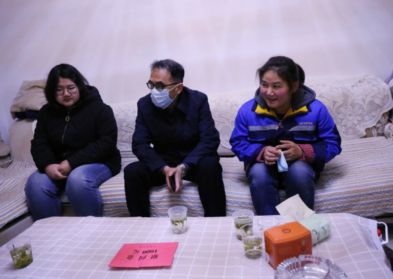 2021年1月27日六安市總工會主席李實在開發區工會主席蔡克東的陪同下前往索伊困難員工劉傳英家入戶慰問,送去節日禮品及慰問金。